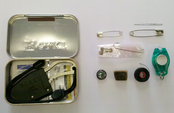 The point of this post is 2 fold. 1st, I’d like to give you a recommended ‘ingredient list’ of sorts for building your own candy tin survival kit and show you a sample of one I have built here at Willow Haven Outdoor. 2nd, I’d like to introduce to you a very functional knife released by CRKT Knives called the RSK Mk5 that was designed specifically for use in small candy tin survival kits.